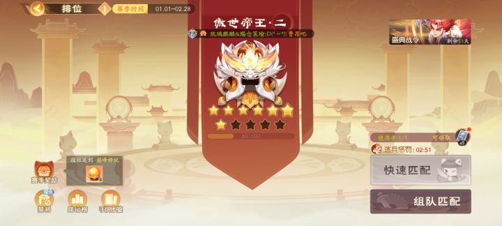 打排位显示“已经在匹配队伍中”,我以为没进去就到家园里偷果子,刚到偷果子的选将界面结果排位开了,接着就进排位了,然后这个排位的选将界面出来的将都是别人的,比如很多一星武将,还有我没有的吕岱和界魏延,关键是全程我都控制不了出牌,没一会儿功夫系统就给我托管了,我还以为手机卡了息屏也没用,也取消不了托管,接着队友就砸蛋,然后被禁赛3分钟,真无敌了