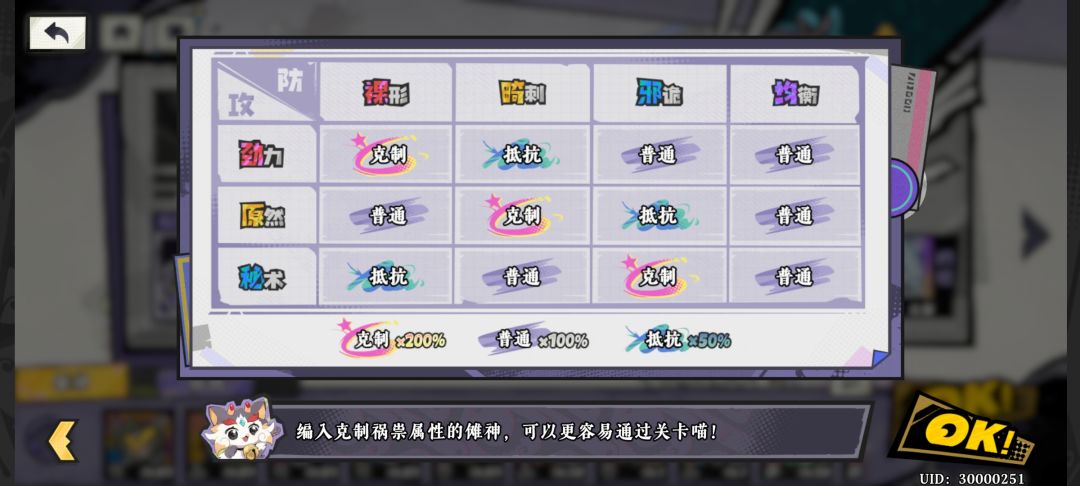 属性克制: 劲力克制裸形,秘术克制邪诡,原然克制畸刺(在组队界面左上角第三个选项) 前期关卡主线裸形属性的怪比较多,所以韶灵必练,做完傩师待办相当于游戏白给一只满级满命韶灵,不用培养,再带系统送的白水素女(拉到30级就够用)给韶灵当充电宝,再弄个前排,奶,再带个输出就是前期开荒推主线的阵容,也要练一个秘术C来打关卡(建议没有噤神的四选一优先选噤神)有噤神就选花枝打勋章材料本,开局时间抽玉叶可以缓解