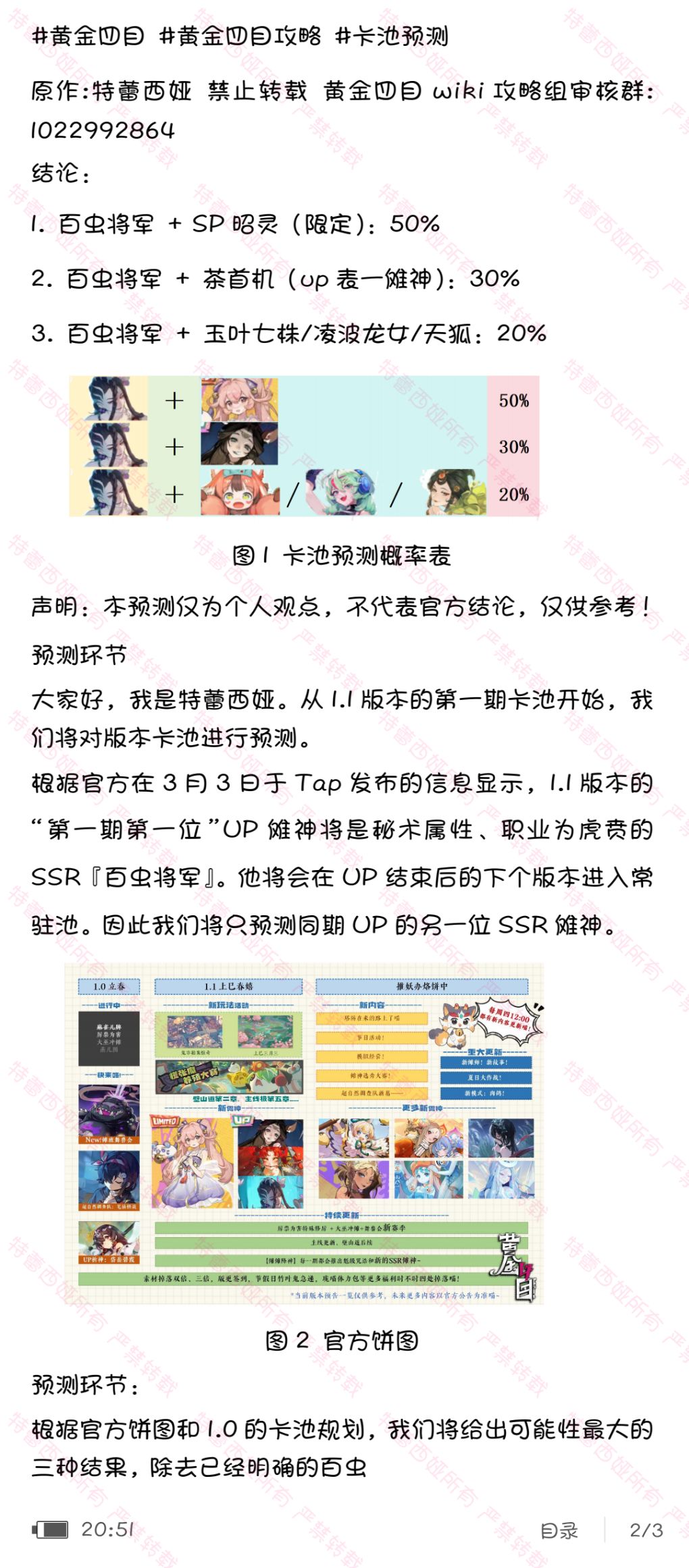 #黄金四目 #黄金四目2月 #卡池预测 预测/文案:特蕾西娅 图片/制图:沐七 特别鸣谢:逐星sama、白昼梦游指南 欢迎加入黄金四目wiki攻略组!审核群:1022992864 未经许可,禁止转载