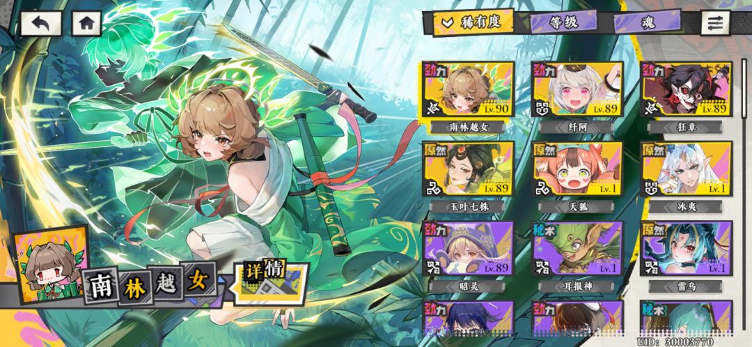 那就是抽越女,前期非常好用,自带真实伤害,前三章全是红色怪,第三章也有蓝色但她也够用,伤害非常足是别人的好几倍#黄金四目 到第四章全是蓝色怪,这时再练个噤神,搭配一起也能通关了 新手任务要练昭灵,这个优先要拉到80级,拿奖励,前期她伤害不低红色关也能出战,后期可以重置升噤神 切记练单体为主,群攻的暂时不用练,目前小怪血量非常低,根本用不上群攻,平时用噤神或龙女清小怪也完全足够了。单体像越女这种必