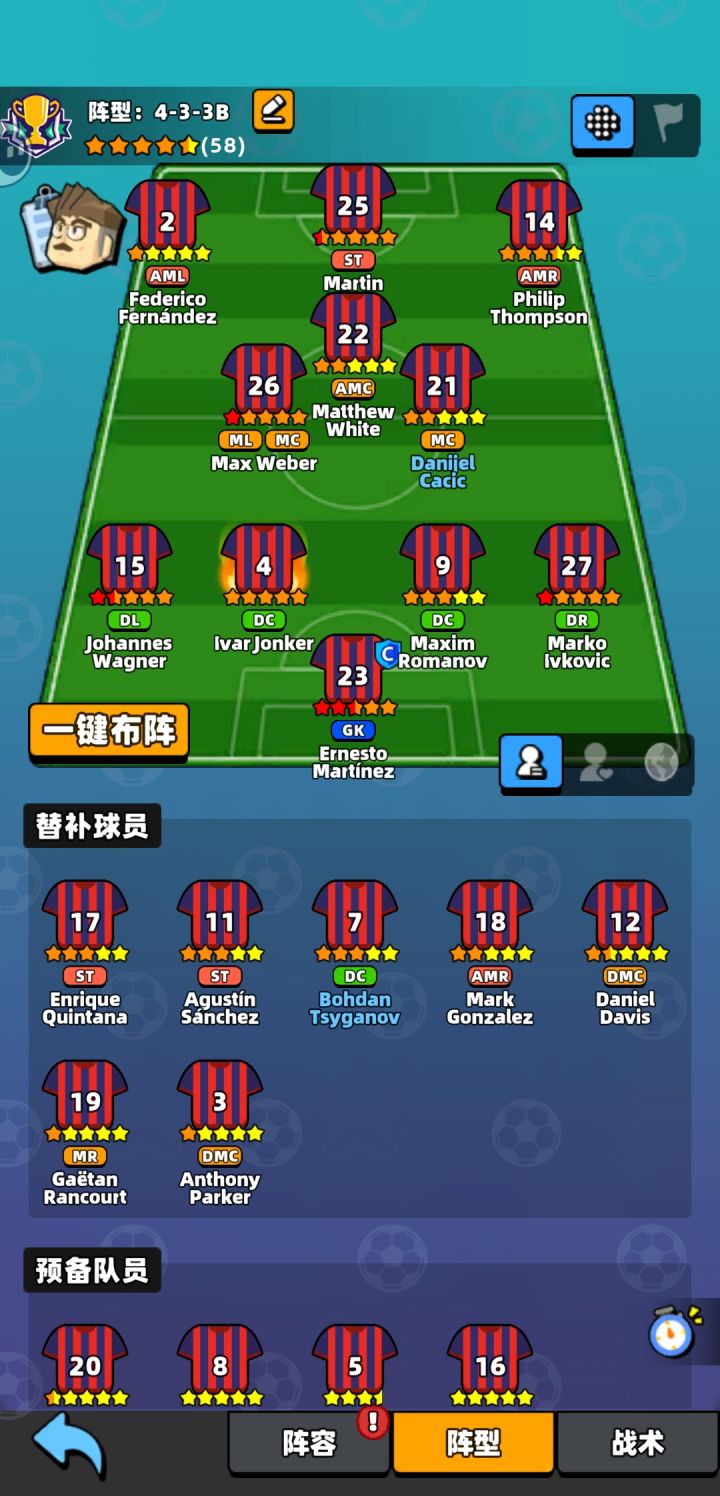 新人经理需要熟悉球员的位置和阵型战术,针对不同的对手可以运营不同的策略,赢下比赛。球员位置球队中对所有阵型的位置,进行了不同区域的划分,不同阵型需要的位置会不一样。注意:1.多面手球员最多具备3个角色标签!可以通过后续的系统来训练新的位置(::>_<::)2.门将是无法拥有其它位置的。前场球员的英文简写分别为:ST,AMR,AML 中场球员的英文简写分别为:MC,MR,ML,DMC#发现好游戏