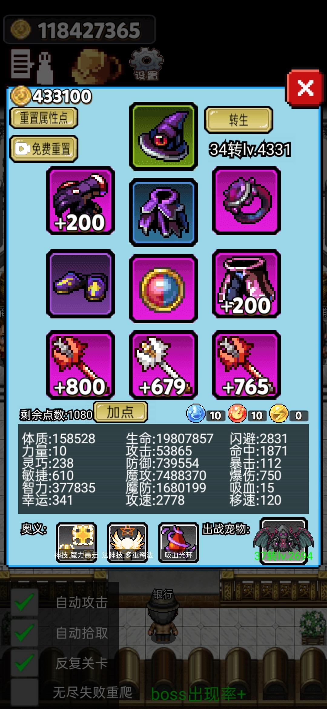 老大们,我现在该怎么打,转级呢还是挂机升级还是刷神杖,升级打不过无尽2万层,目前我能打到1万5-6左右好难打。
