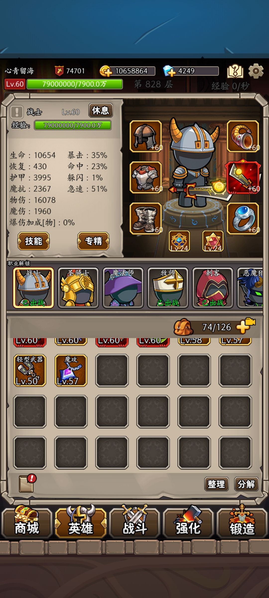 英雄爱挂机2.7更新内容 1.更新版本到70级,新增65 70 普通boss和深渊boss 2.新增60+装备,每个职业新套装 3.新增远古战场 4.新增70神器锻造(饰品 戒指) 5.将秘境挑战书移除,改为远古挑战书(之前的秘境挑战书依旧可以进入远古秘境,远古挑战书可以进入远古秘境和远古战场) 6.强化等级提升至70级,整体增幅上限提升到20% 7.提升了广告获得的金币数量 8.60+图鉴还没有