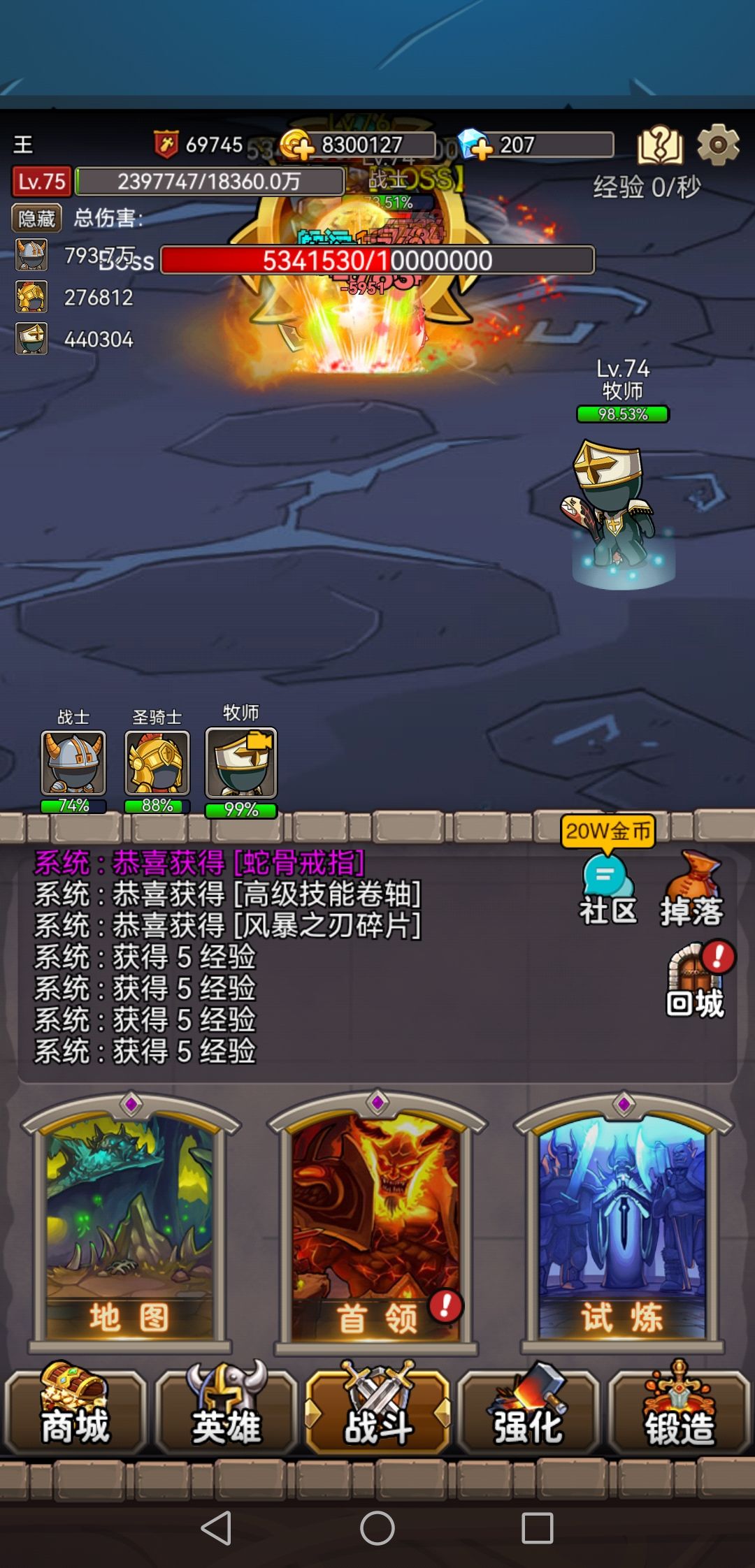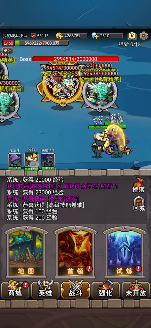 三角色都是魔防戒指,三角色都是套装,牧法魔攻项链boss最后100万血的时候,会有几率触发恐惧,但凡触发了基本就翻车,不触发就能过
