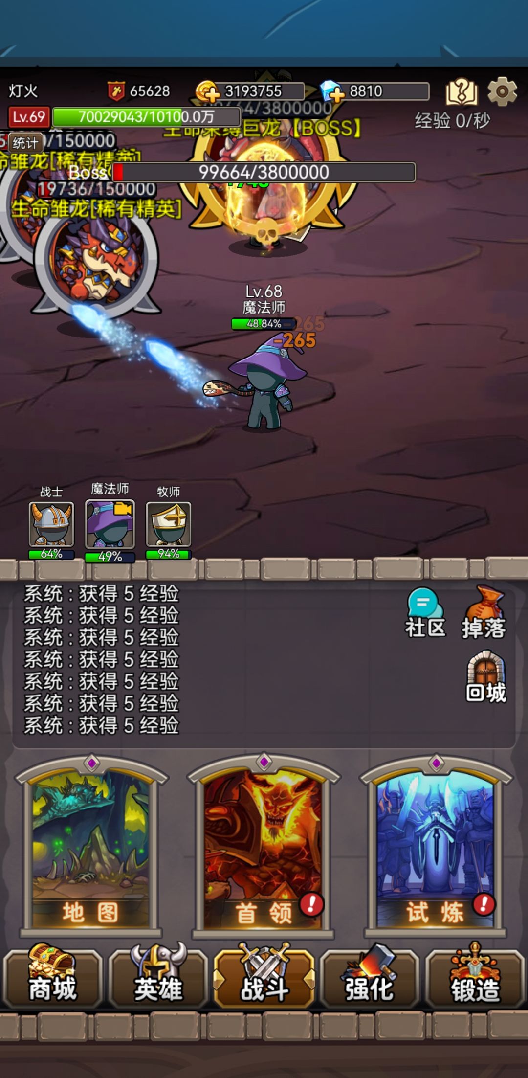战士,骑士,牧师 拉扯怪集中,战士直接群秒,死了拉扯骑士牧师跑路,骑士装备带复活套,然后无限拉扯复活战士把小怪清了,然后就可以无脑挂机了。牧师最好带点加血防项链,戒指