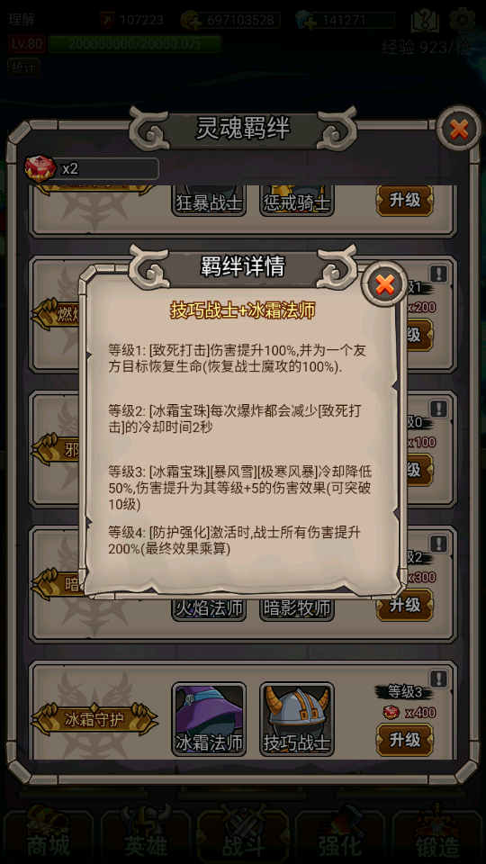 P1.练级阶段一、开英雄战士→恶魔→牧师→法师→骑士(不是非要这个顺序,但这个顺序玩起来打boss没那么累,练级也不是特别慢)。二、练级开法师后,用法师、牧师、恶魔练到法师58级套装齐,理想状态是法师60级寒冰箭加了天赋后能秒55级小怪。接下来优先带战士、刺客至60级(为下一阶段积累装备做准备),接下来练牧师(50多级牧师一样打6层),最后恶魔和骑士。三、技能&钻石此阶段技能注意升点寒