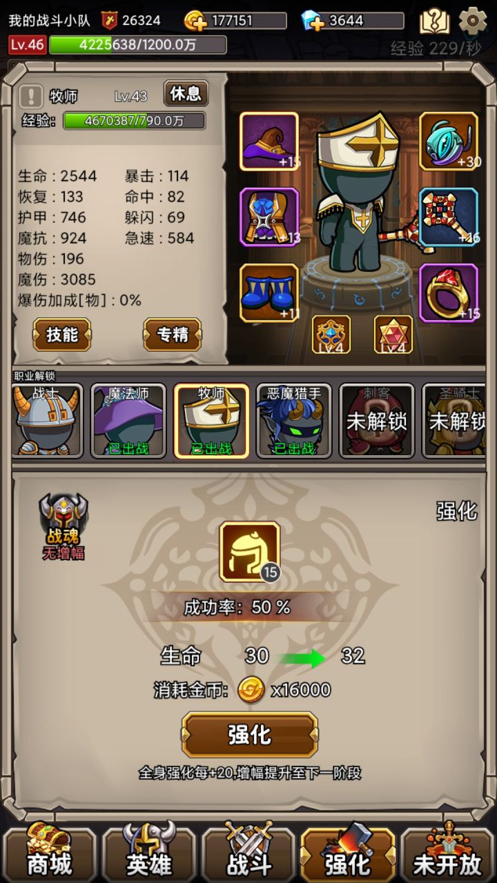注:本攻略会不断完善和查缺补漏一.开局推荐战士,法师,牧师二.升60级,属性介绍和爆装备到60前三个英雄只堆极速到50%只能多不能少,挂机自己能秒小怪的地图升级效率最高(你52级能挂50-45-40,40或者-45级挂机效率更高)提示:点击属性能切换百分比面板,升级只带输出项链和戒指,防御项链和戒指只留57和58级,防御项链戒指各留两个50切换专精:狂暴战(点一下1-2升级效率更高),