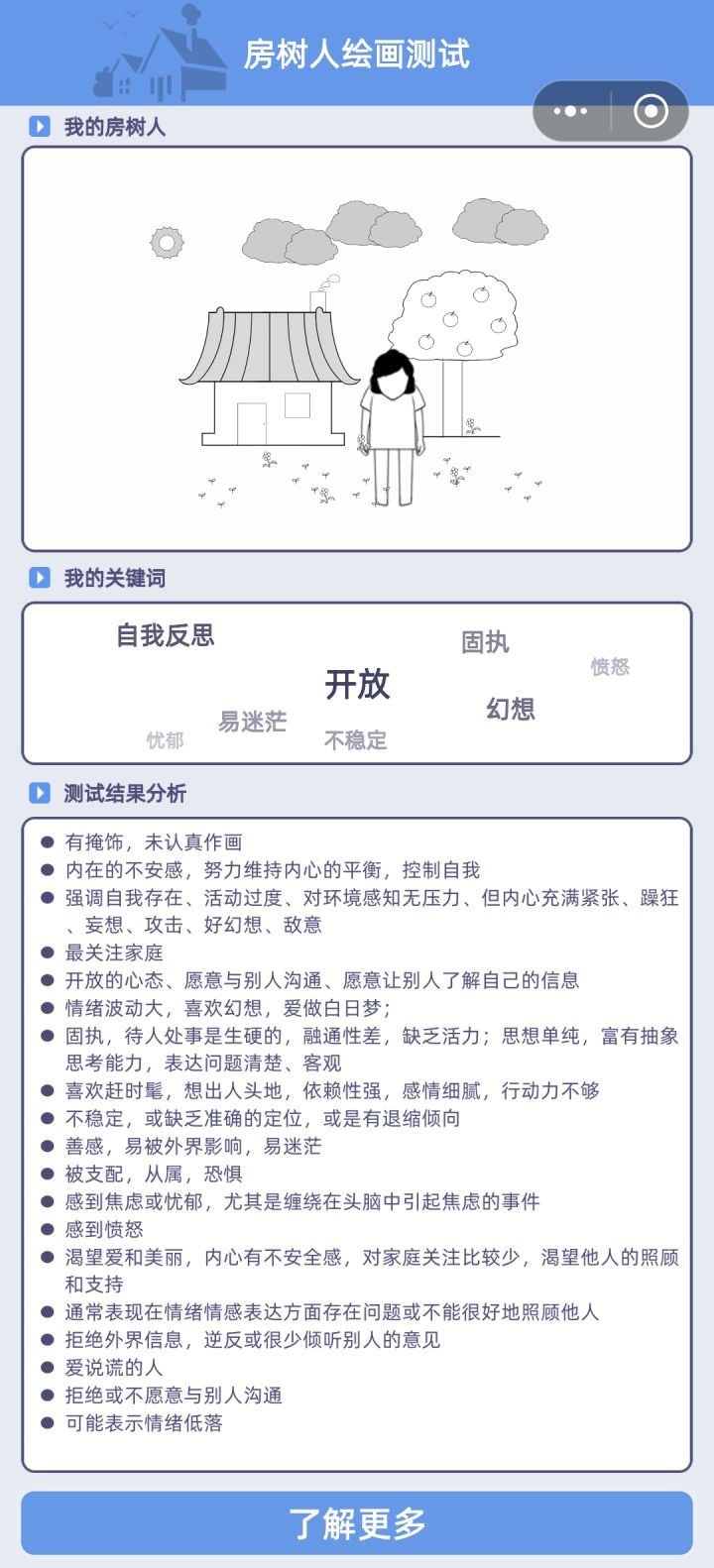 总结 - 围绕“房树人”测试的讨论正在升温。不少玩家吐槽选长发就被判定为“贤妻良母”逻辑生硬,且生成结果时素材严重错位、画面诡异。此外,认真作画却被系统判定为“敷衍”也引发了大量玩家“红温”吐槽。