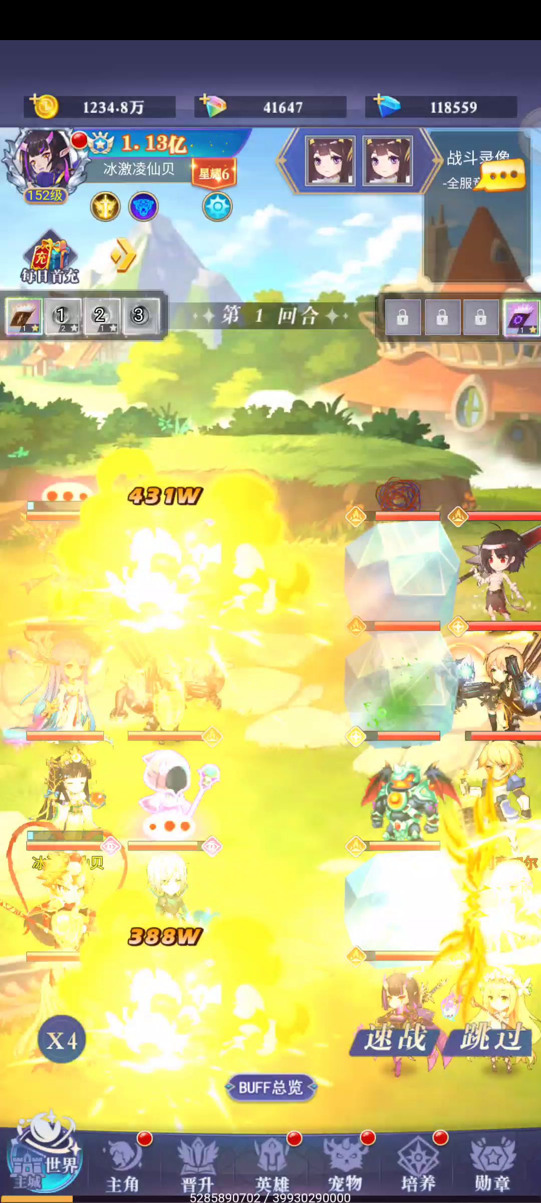 在运气不好没抽到ur输出角色、第二输出太阳神很快倒下的战斗中,凭着两个奶保护炽天使边回复边打,成功越战十几万赢得胜利