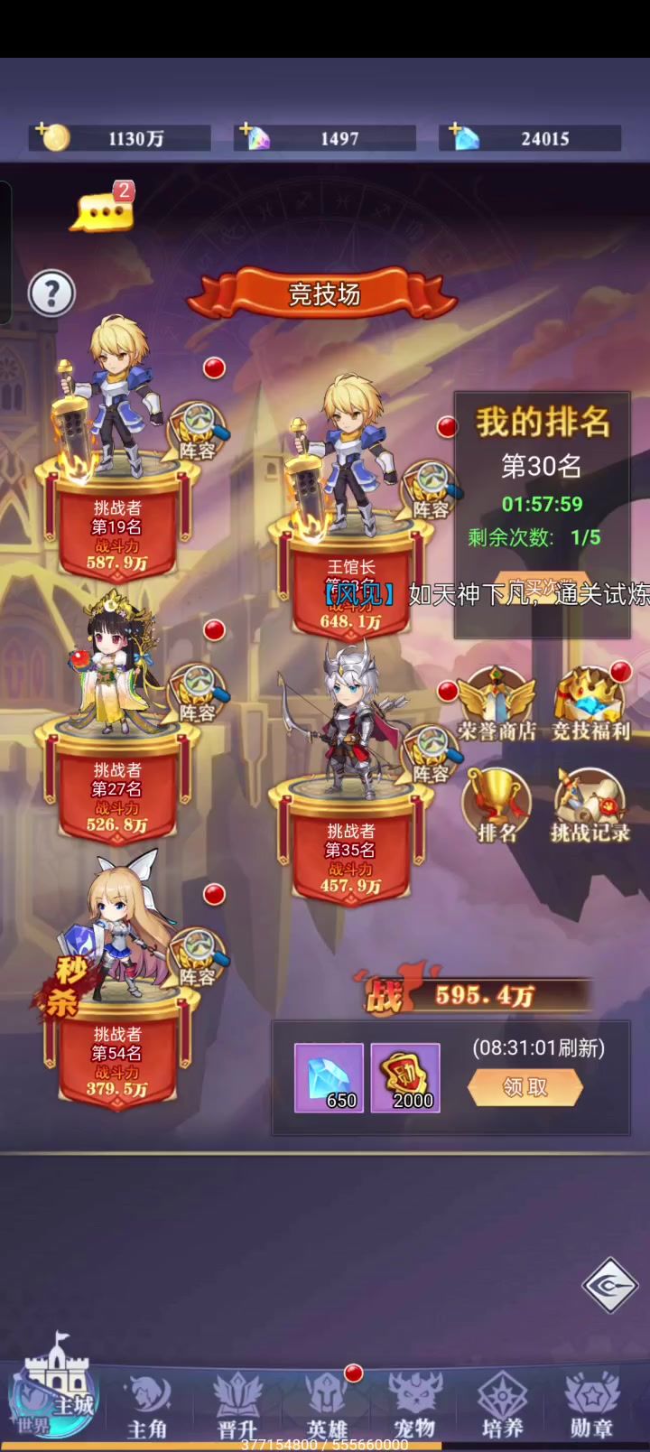 这是一场势均力敌的竞技场战斗。战力都在3000w+。但是对方有hur的宠物.经过超过2分钟的拉锯战。我最终惜败