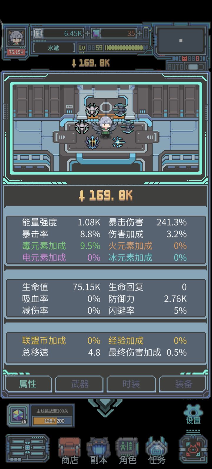 可玩性:个人喜欢的挂机玩法,开始一把小水枪实在是不得劲,后面装满武器后着实是鸟枪换炮,开自动看着各种弹幕飞来飞去很解压;不过副本还是很有挑战性的,需要上手控制一下走位。
