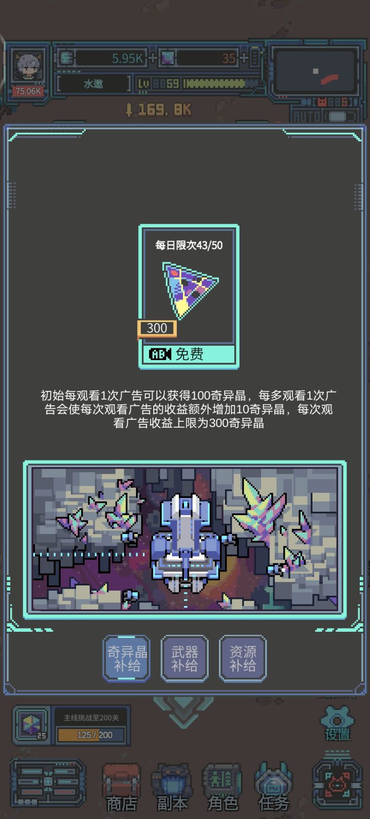 这个游戏整了个看广告加暴击率,加最终伤害,加生命值百分比的反应堆,简直了,图片见下。(扣1星)