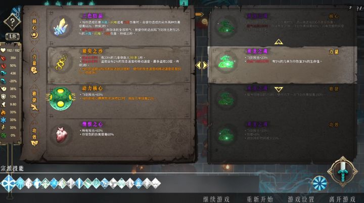 虽然在第一章打BOSS前会有一个商店能让玩家补充,但是圣物有点太多,如果能做一个流派特定圣物以及通用至物池就更好了,没有指向性功能,所以出什么圣物要纯靠运气。值得一提的是,武器、圣物还有武学都是有品质的,品质越高,玩家受到的增益就越强,所以还挺看脸的。