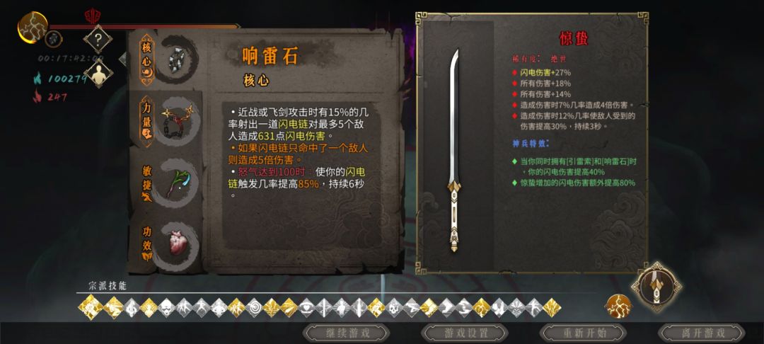 本人已经全角色通过了,推荐萌新还是走雷一迅影,只需刷出一个橙色踏风草就可以完全成型,拿到那本100%触发怒雷的秘籍后伤害就充足了。遇到怪物只要按冲刺和收剑,如果收剑CD够可以换成三号位珍珠,全程无伤。实在手残一号位也可以放珍珠,伤害也是可观的 核心:三色结晶,响雷石 力量:墨火结晶,引雷锁 敏捷:须臾之沙,响雷石 功效:响雷石,憎恨之心 也可这样搭配