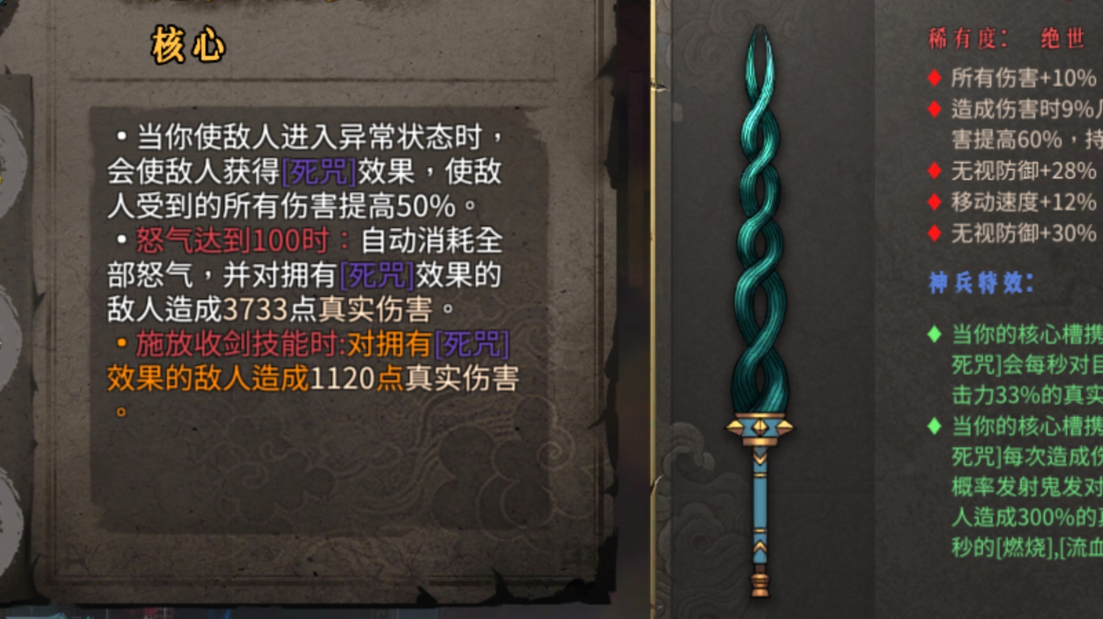 无尽模式顶级流派,三色流万剑 武器太祖,前期收剑cd没叠起来可以先用骤雨,最好洗两个加魂的词条,以便买圣物精炼 开局墨火1+踏风草3,保证前期清怪效率 神装如图 精炼全生命,配合梦魇体魄加伤 普通秘籍就走火魂多加伤的,不动后期朱雀叠起来了可以拿 职业秘籍先拿金,再拿正常移速+霸体 梦魇秘籍先拿常规的(盾+血+收剑+怒气+飞剑攻击) 再拿三元素伤害(期间遇到橙三色就可以换了) 注意梦魇层数,不要太