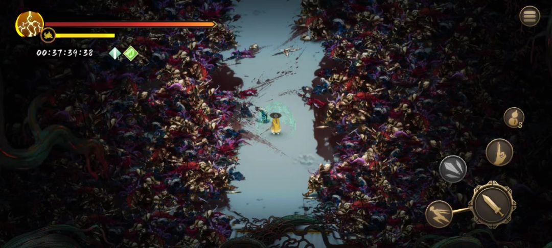 圣物只需要4号位破冰石,其他出啥武器带啥圣物,不用也可以选择少带一个圣物提升33伤害的技能,技能优先攻速,武器专属的也行,冰属性也行,通用也行,然后你就可以只要按着攻击键一路砍过去了,白灰之前随便砍,白灰因为我还没玩,不知道难度咋样😂