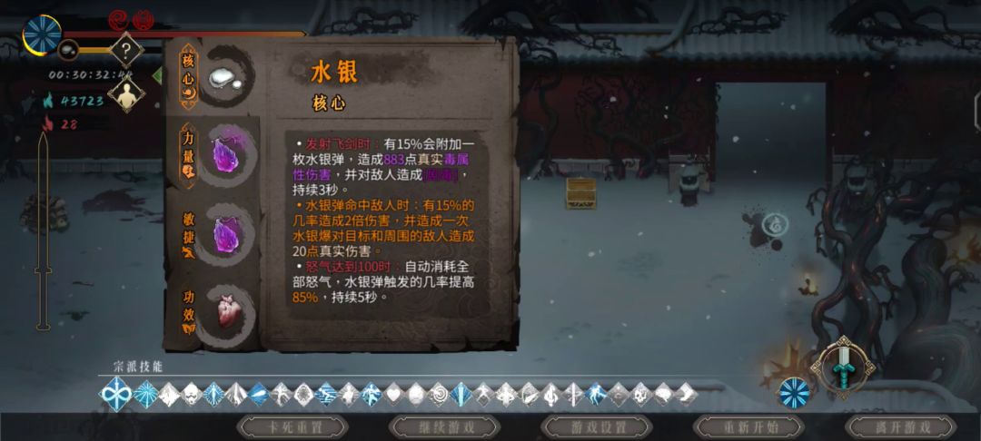 游戏难度分为细雪,中雪,大雪,虐雪,狂雪,白灰对于萌新来说白灰难度非常难打,经常被boss秒的同时伤害还不够,今天就带了一篇白灰难度下容错率非常高的打法。 雕像选择:圣威怒雷金刚左边的这个流派 精通选择:全生命 圣物选择: 核心:珍珠 力量:玄武之魂 敏捷:踏风草 功能:朱雀之魂 武器选择:太祖 技能选择: 必备技能: 专属:雷神之铠>雷神之刃>永劫天雷 通用技能:走火入魔>魂多势众>神勇无惧 推