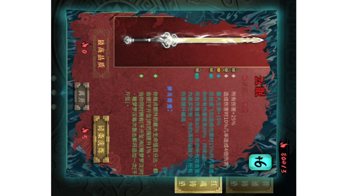 真别说看攻略都出不了门了,保姆式教学,简单粗暴 先sl出门装 3号:雄黄 4号:火硝石 别问我出门为啥有俩圣物 当然天赋没点满的可以先收藏哈 酒2出门飞剑一直按着就行了 俩传说圣物完全够前期输出了,剩下的推荐 1号:墨火结晶(其一有这玩意进图放飞剑都看不见怪是怎么死的,其二就是可以方便后期没有火硝石点火也能触发点火) 2号:毒囊,墨火结晶,布莱克火药(毒囊最优选,最大化毒伤) 3号:雄黄整局游戏不