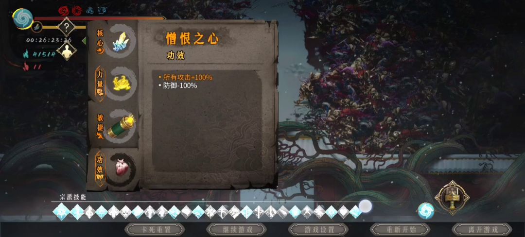 思路:通过黑火药2上燃烧打出火焰伤害,触发墨火4的范围爆炸速度清小怪。 必要秘籍:爆燃、野火、烈焰斩、走火、魂多 次要秘籍:龙(蛇)酒,强化龙(蛇)酒,愈演愈烈,狂热等加伤秘籍 注:这里响指流建议龙酒,蛇酒虽然可以跳龟章但为了追求艺术,跳关什么的都无所谓啦 开局搭配:黑火药2 + 墨火4 响指流(龙酒):墨火1 + 黑火药2 + 任意3 + 墨火4 响指流(蛇酒):鬼姬1 + 黑火药2 + 雄黄3