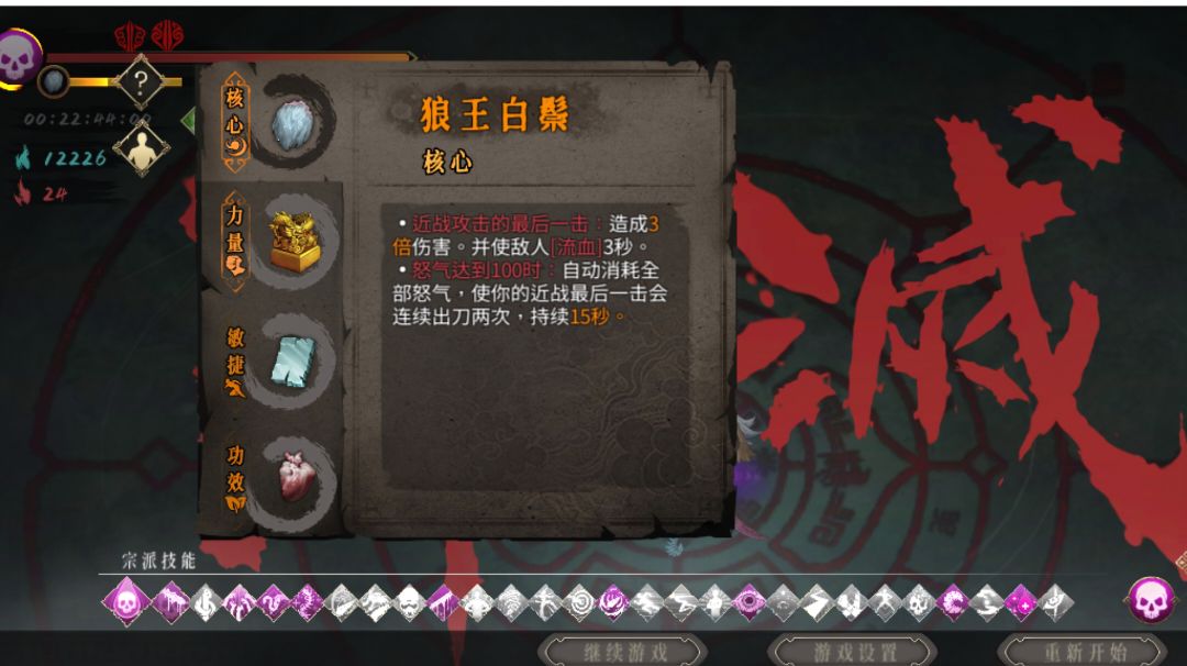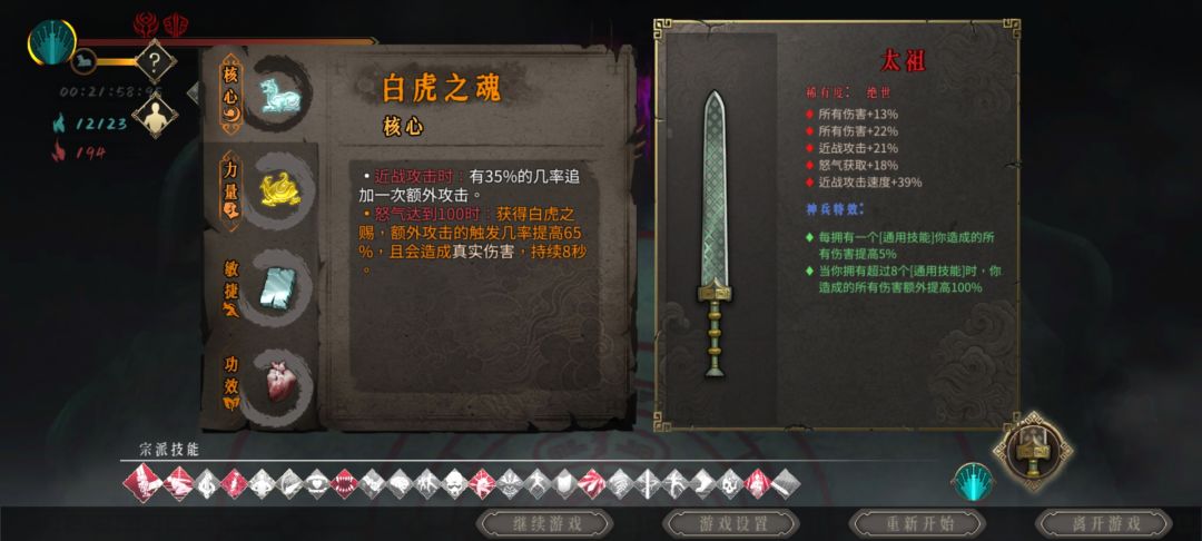 核心: 白狼一大幅加强近战伤害,同时稳定挂流血。 毒刃对于流血状态敌人触发概率变为100%。 百足触发毒刃后会额外造成200%近战伤害,并有15%利率触发判官。 三者互相作用增幅。 主要技能: 万毒加毒伤,同时让飞剑附加剧毒。 判官配合百足连续引爆,造成大量伤害。 大幅增加攻速,提高百足触发频率。 之所以选毒2就是因为不可一世的60全伤香,另外毒2比毒1伤害爆发的快。 这是打龙帝之前的时间,21: