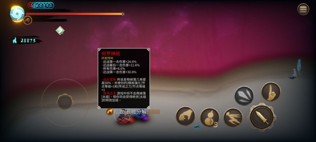 终极残响:毁灭之拳+百兵之王!高级残响:两个体魄之力+任意词条!次级残响:月能+真伤/任意词条! 判官最理想状态,就是序章集齐“疾风+血宝图+血墨满堂”, 但这样的发牌太难遇到了,一镜到底的发牌状态下,概率太低, 所以出门一般会SL,找血宝图,然后关底找血墨,再商店SL找疾风, 所以像这场一镜到底,无需SL的发牌,也无需SL的发挥, 虽然不是极限时间,但已经是目前的极致表现了!