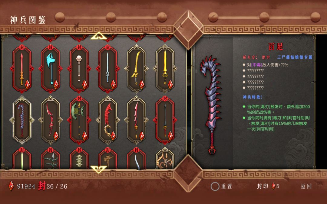 由于无尽可以叠高攻速高攻击 所以我们可以玩近战流毒系 通过引爆流血、剧毒、中毒的层数来提供大量伤害 总体成型 武器百足,近战80%几率35流血,血量200%或者毒伤110%。 1号位猪心,2号位玄武,3号位朱雀,4号位朱雀。 或者1号位猪心,2号位朱雀,3号位朱雀,4号位尸变断指。 玩法:通过【流血】和【中毒】并输出近战伤害,【判官时刻】也会提供大量伤害。开辟了新的可观的输出方式,通过引爆流血、剧