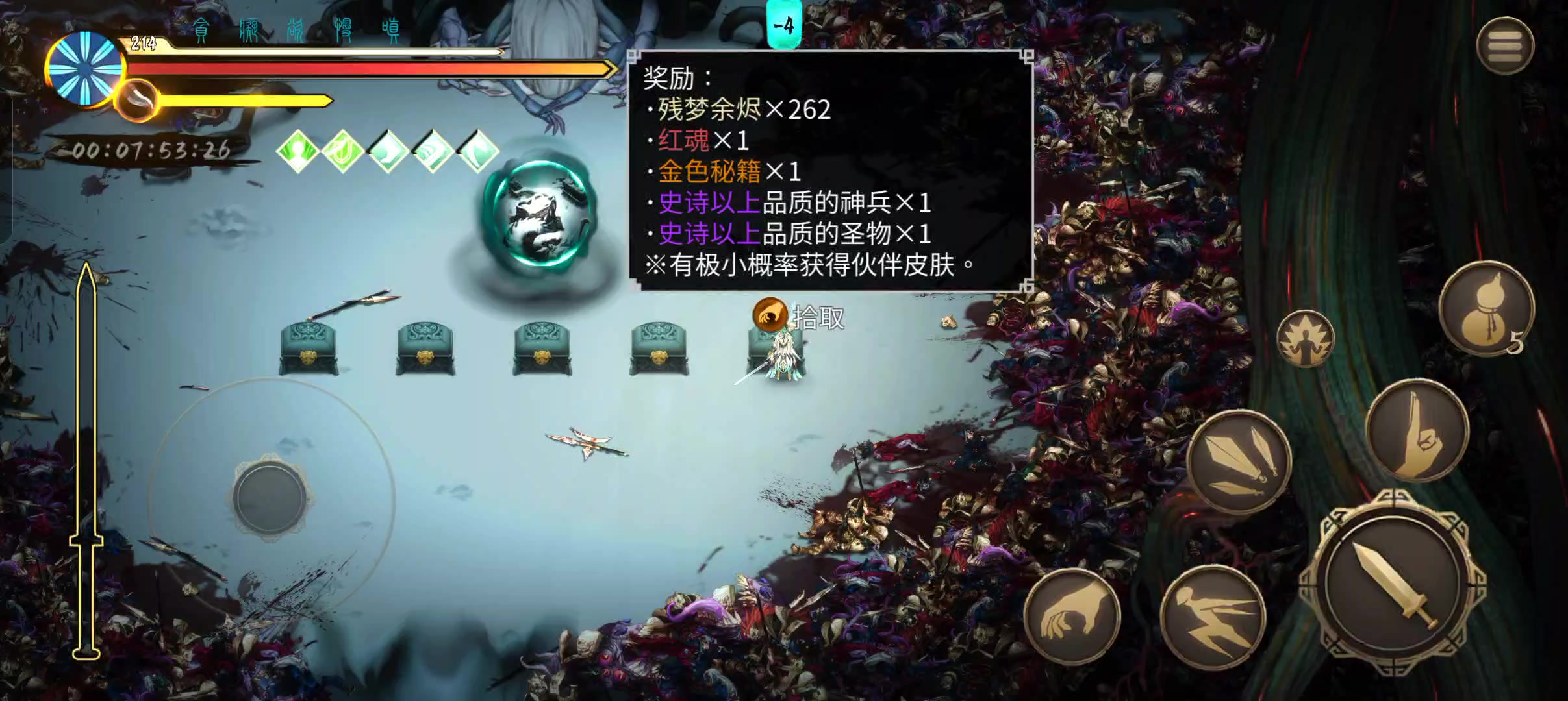 中午回来更新完,第一次打选择玩神行,天赋就开局给的那20点,开局把走火入魔sl出来,在序幕结束之前把气刃斩给刷出来了。之后一直在用气刃耍小怪,运气好,又刷出来了个传说朱雀,把朱雀放在二号位,武器带的绝世太祖有100多的幽冥之魂获取加成的词条,到中转站就买买买,之后精英boss都是一刀秒。四号带的猛虎之印,三号青龙