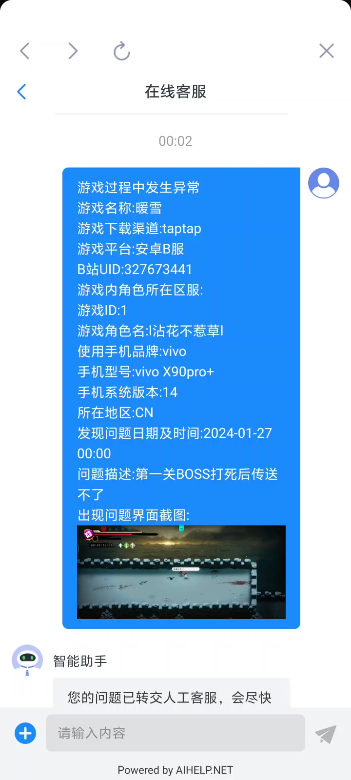 之前是卡打死第一关Boss之后传送那里,然后去找客服,没想到还是群聊。
