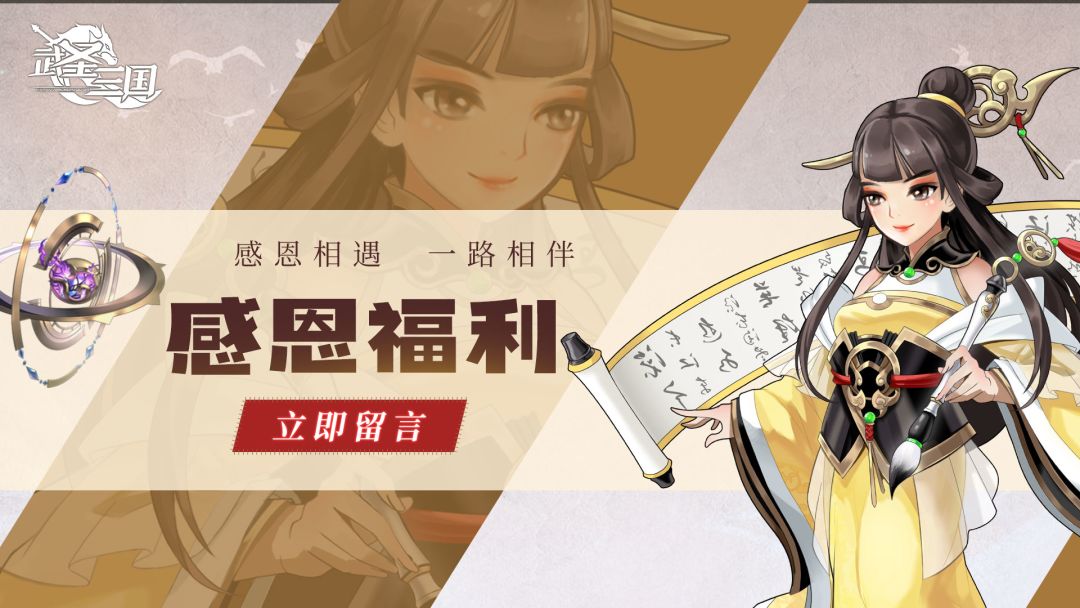 感谢主公们对《武圣三国》的支持,感谢相遇,感谢陪伴,在这个节日,大家也不要吝惜对身边的人大方表达感谢哦ღ( ´・ᴗ・` )比心 “感恩寄语”留言有奖活动正式开启啦~在评论区留言即可参与活动 12月1日 00:00将由系统随机抽选10名送出:游戏大礼包*1 礼包内容:武灵丹*688、高级唤灵珠*8 让我们借此机会向TA表达感谢,让这个冬天更加温暖~ 关注右点游戏公众号,还有感恩福利礼包等您领取(有效
