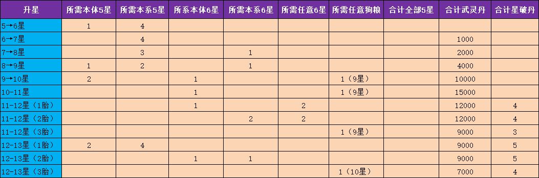 满满干货,武将升星资源表