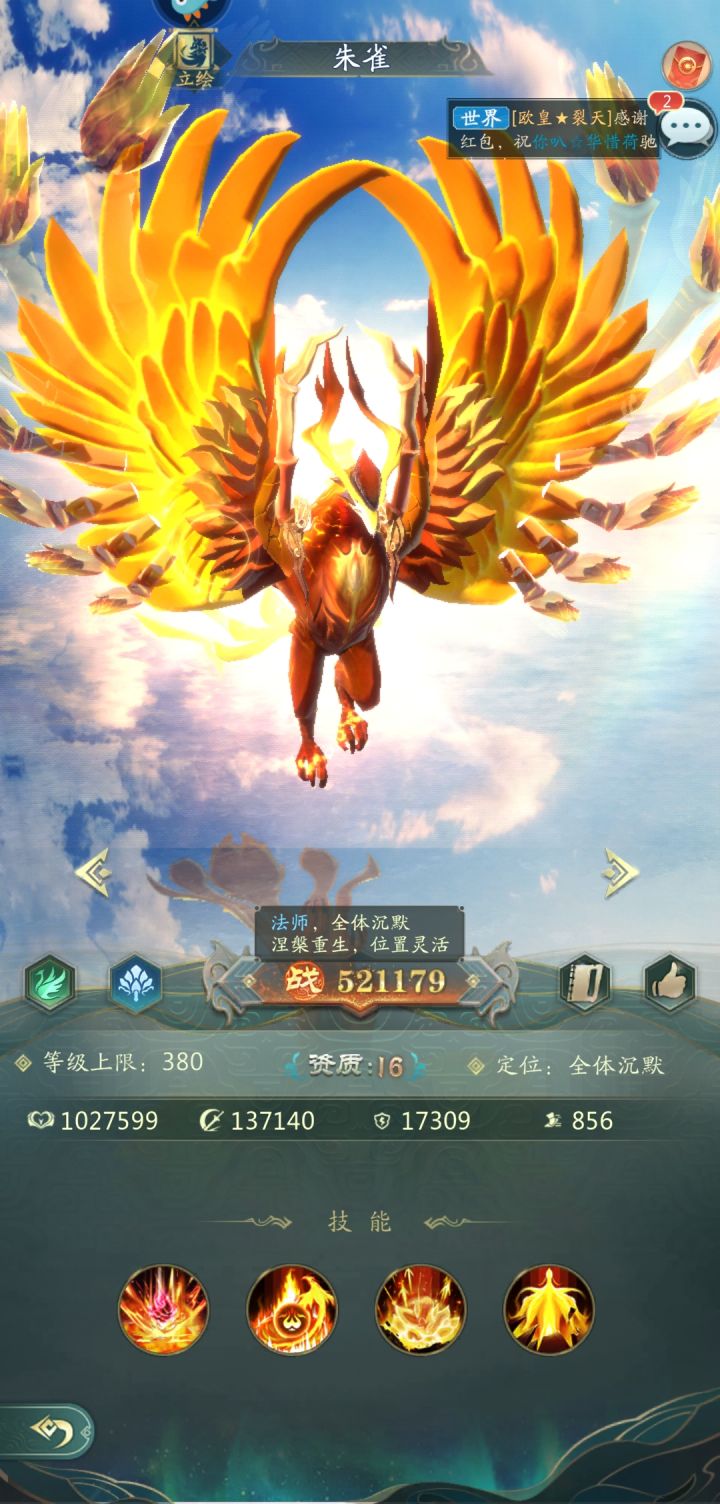 获取难度和异兽本身强度之间是比较稳定的(白虎朱雀强度逆天,轩辕黄帝玩起来真的比较难受,虽然总的出伤来看也不低),特别强的确实零氪平民触不可及,所以这个游戏氪金与不氪金差距极大,但零氪玩家也不是不能玩