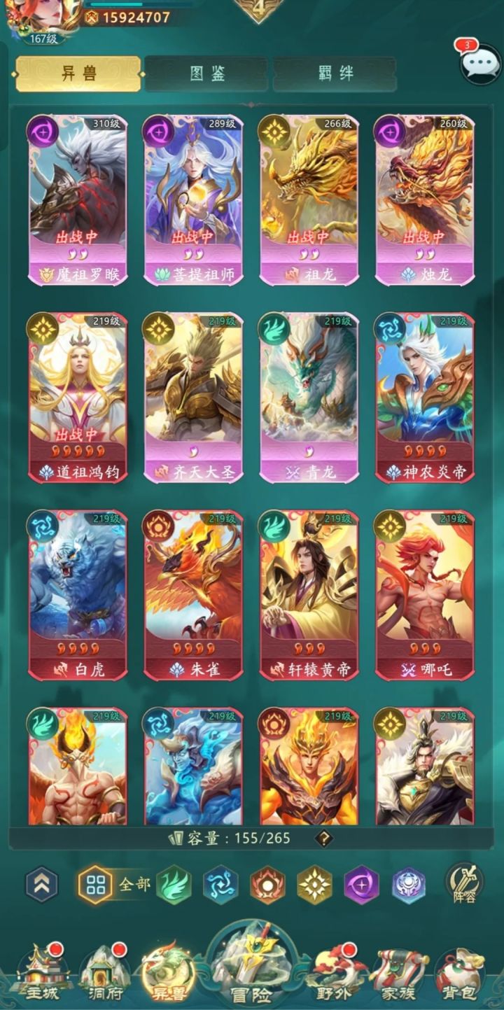 阿狐上次为大家带来的异兽阵容推荐,元灵大人们觉得如何呢?还没尝试也不要紧,本狐今天又准备了一套不同的阵容搭配~这可是咱从策划阿猩那里软磨硬泡要来的攻略!废话少说,咱们开始吧~帝江、九尾狐、青龙、朱雀、英招输出帝江+青龙+朱雀三输出手的阵容组合十分适合新手。帝江讲究一个简单粗暴,干就完了!用【赤翼攻心】席卷全体,再依靠被动回血。输出和站场能力两边都不能少。青龙擅长用【九霄雷电】麻痹敌