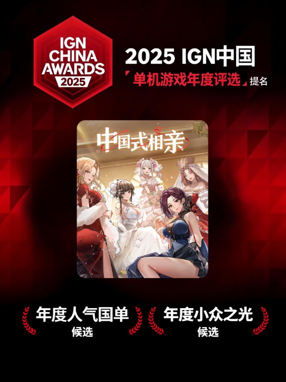 《中国式相亲》开发团队与发行方今日发文报喜,游戏成功入围2025 IGN中国单机游戏年度评选的【年度人气国单】和【年度小众游戏】双项奖项,团队难掩激动与欣喜之情。