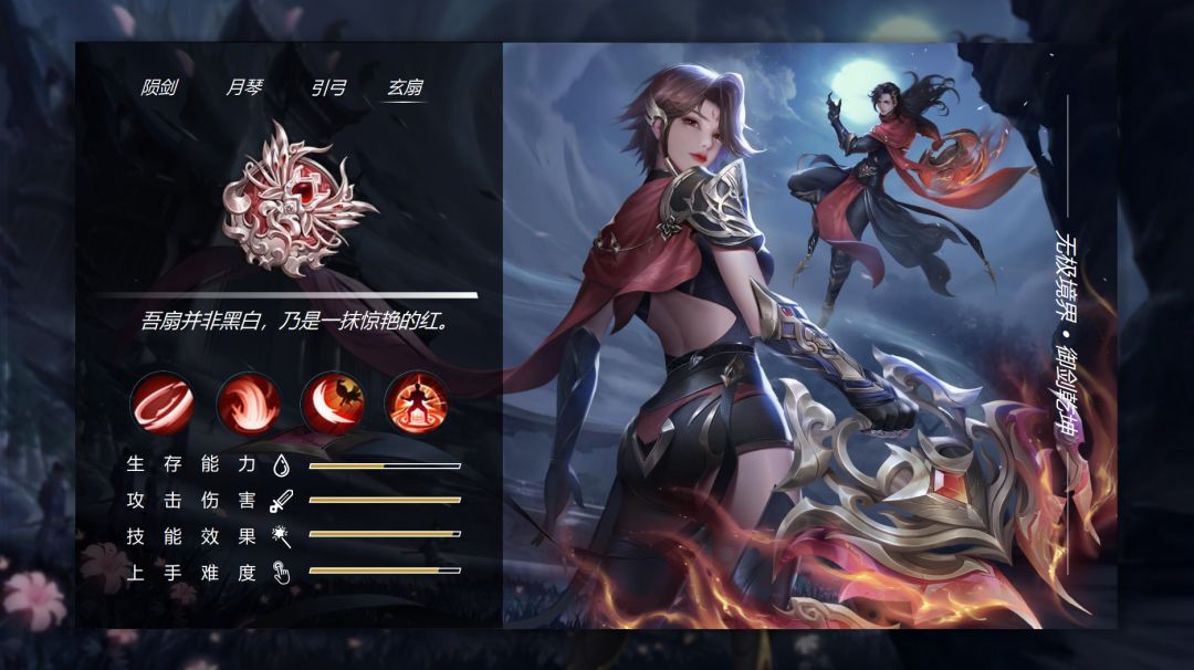仙友们好呀,前面咱们已经介绍了陨剑和月琴,今儿个小娇为大家带来玄扇这个职业的介绍~ 如果说陨剑是仙气飘飘、大道证心的修行者,月琴是能够召唤宝宝、以琴音镇邪的净化者,那么玄扇在小娇心中就是一位意气风发,除恶扬善的裁决者。但见不平事,出扇以正之。 而玄扇的职业技能也很是帅气的,咱们来看看~ 聚力于扇刃,3次连续冲刺斩杀,总共造成基础攻击百倍伤害,同时在短时间内提升自身闪避率。 扇刃连舞后一击月牙斩,总