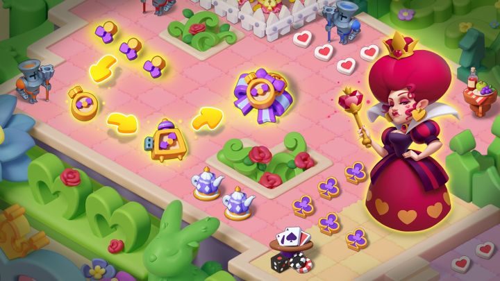 在这个国度中,必须不停地奔跑,才能使你保持在原地。在黑魔法影响下,红桃皇后的后花园被层层☁迷雾笼罩......仙境春日来临,是时候修复🔨破败的花园了!浓烈的🌹红、黄、蓝、紫,柔和的🌼粉、白、绿,让整个花园无比协调与热闹。花园里的未知处好像闪烁着晶莹的光芒✨,是红皇后撒下的魔法粉末吗?亲爱的小精灵们,使用合并魔法🪄,来帮助扑克卫兵让花园重现繁荣吧!也许,👑红桃皇后会送你珍贵的仙境礼物哦!【活