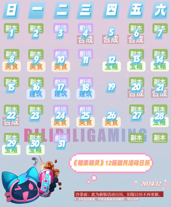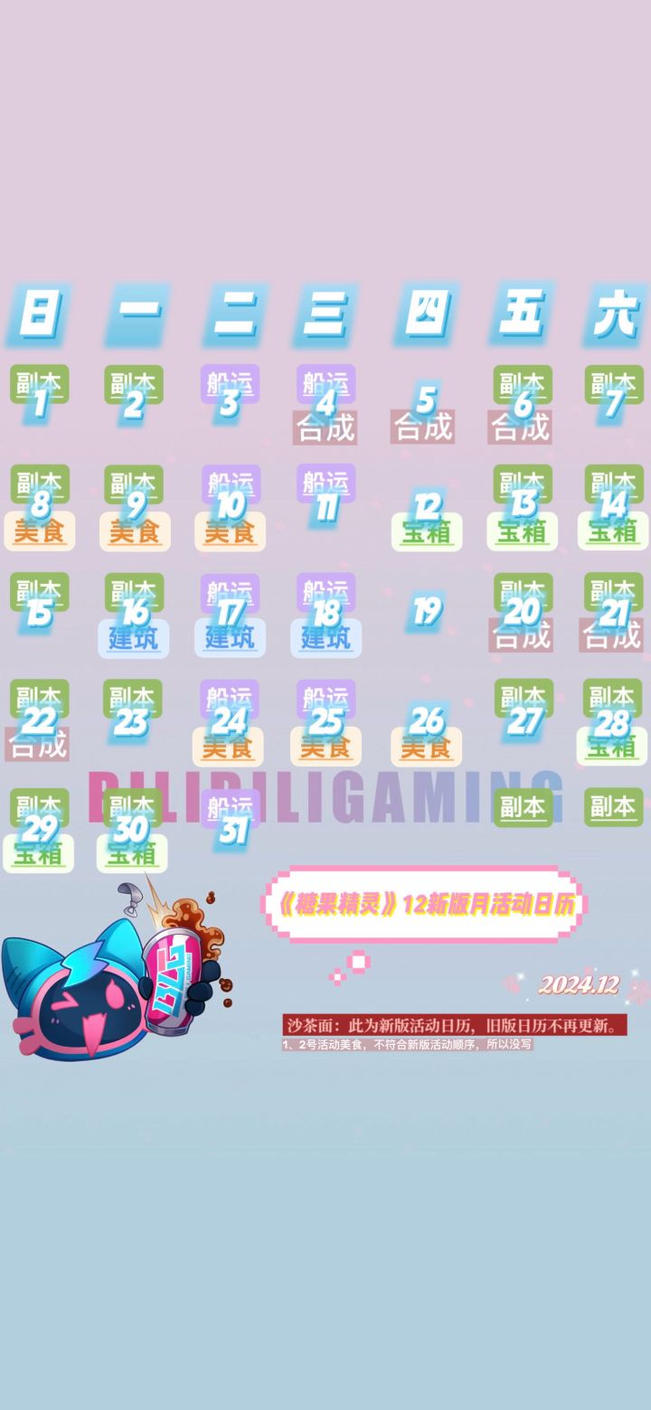 元旦将至~给小精灵们带来了新一年的活动日历哦✨【副本活动】1月一共5个副本,都是历史副本哦,之前没有集齐图鉴的,这次可以加油咯🎇!✨【积分活动】每周二至周三的轮换积分活动:🚢皇家船运、🍖布鲁尼小吃店、🛥飞艇旅行记,见图标标注。✨【竞赛活动】每四天轮换的竞赛活动(合成、订单、宝箱、建造)排期,见文字标注哦~🎉如遇到bug请不要着急,加官方Q群反馈客服哦一群:693410884二群