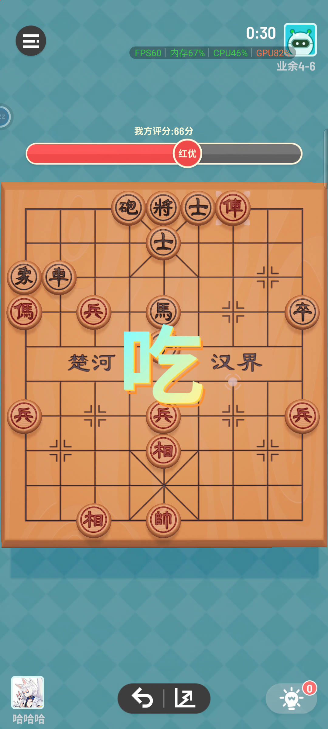 开局上马起横车,快速占肋压住对面,人机其实水平有限,有些杀招并不会去防守,全靠人机上分