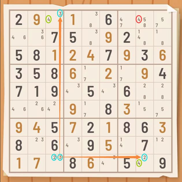 阿卅莱姆阿莱控~~~~诸位人美心善英俊潇洒的数独天才们好。本篇教学是X-Wing技巧同一”家族“的【XY-Wing】。------------------------------------------------------XY-Wing(好像也有叫Y-Wing的,不知道为啥术语没有统一 ....... -_-)的定式涉及三个只存在2个候选数的单元格。其中一个单元格是另两个单元格所在单元交错