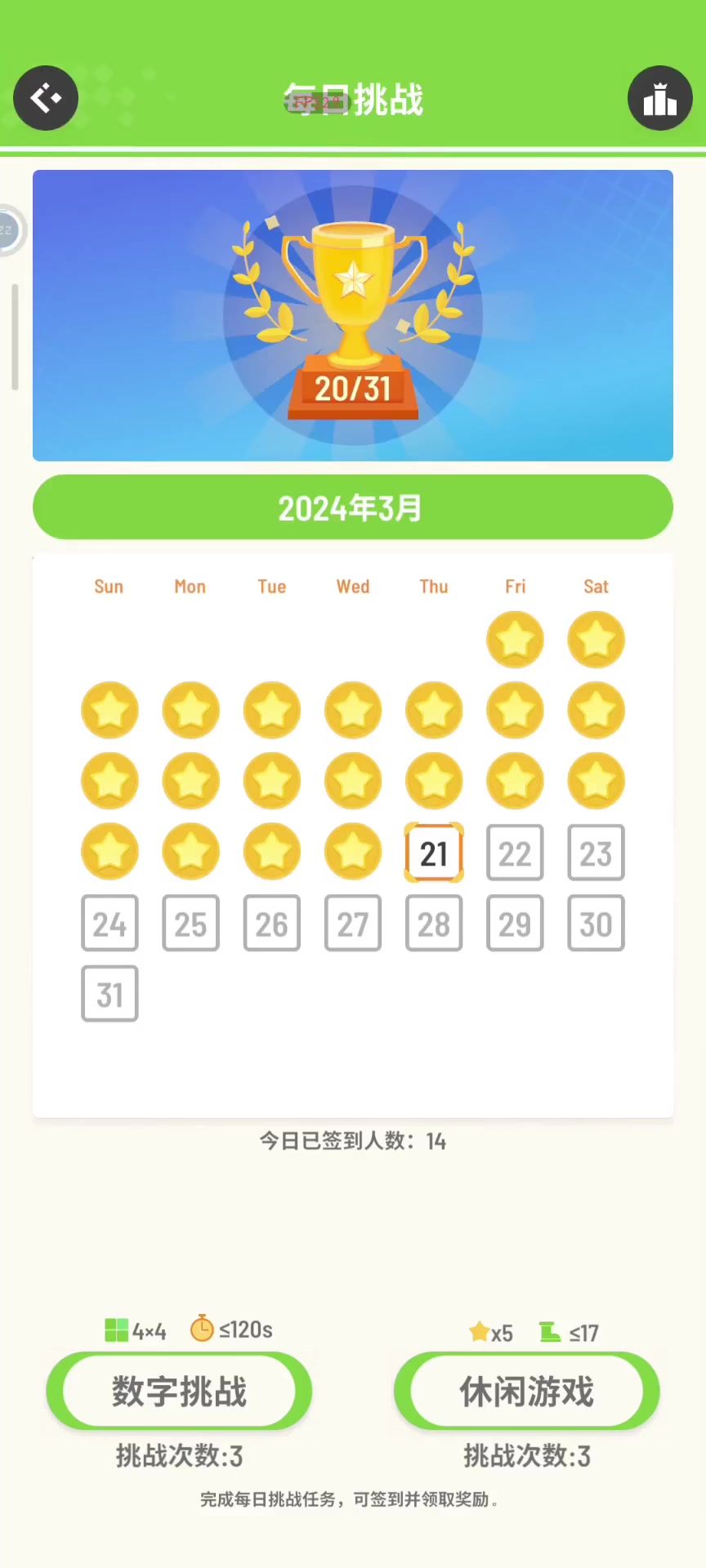 我用了52h 要讲的有两点: 1.成就:“时间长河”是根据P3,数字关卡右上角那个计时的,过关时的时长累计500分钟,(重点是过关才计算) 2.休闲关卡一共一千关,狗看了都摇头 其特色是:每完成一次每日挑战(两项;数字和休闲),给一次提示通关的机会(上限是99个,之后再获取不给了就是99) 用完时可以看广告获得一次机会,(这是最快速的过关方法)(自己玩也能,但要三星,后面难度会越来越高) 这个广告