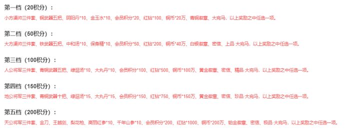 【吞天食地外传之三国群英666】开局攻略上面我们说到,完成结局可以获得开局积分(重复获得无效),普通结局+10分、特殊结局+20分、彩蛋结局+30分,积分达到一定数量可以领取开局奖励。目前开局奖励共分为以下几档,奖励(以2024年2月5日版)做如下所示:#攻略#游戏安利#游戏推荐#游戏讨论#游戏福利