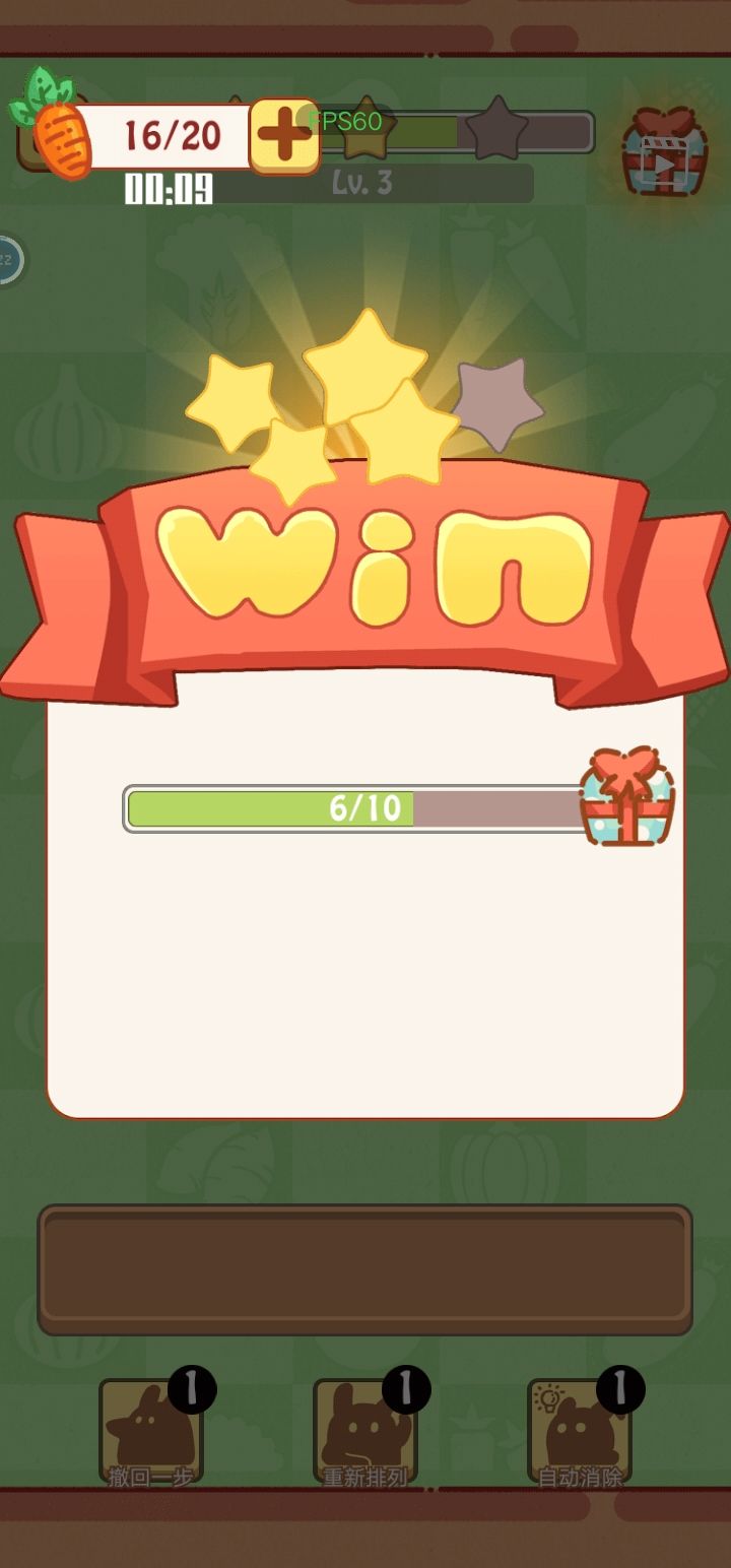 挑战(指第二关)前面非常简单,注意规划后面要消的蔬菜,即使偶尔手快出错也没关系。