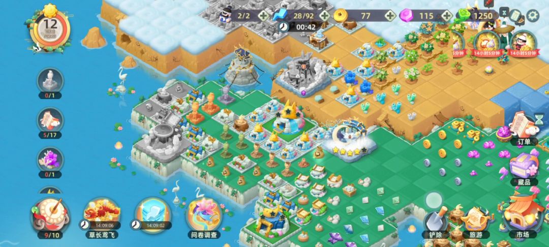 合合岛这边,采集需要时间,建筑需要时间,等待作物恢复也需要时间,体力需要等而且极度不够用(别说什么活动,我活动签到拉满+氪金体力/