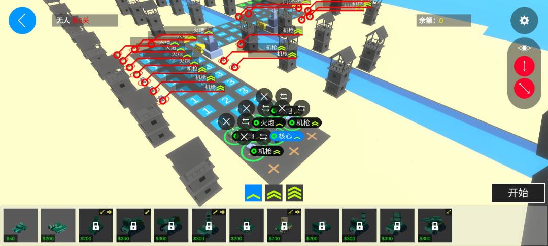 第三路到达第二个路障时,会吸引左侧火炮的注意,但是被路障挡住无法攻击,这是可以用第一路载具打掉这个火炮。同理,第一路载具到达路障时,会吸引左侧第二个火炮的注意,这个火炮同样被路障挡住,无法攻击,用第二路载具打掉这个火炮。