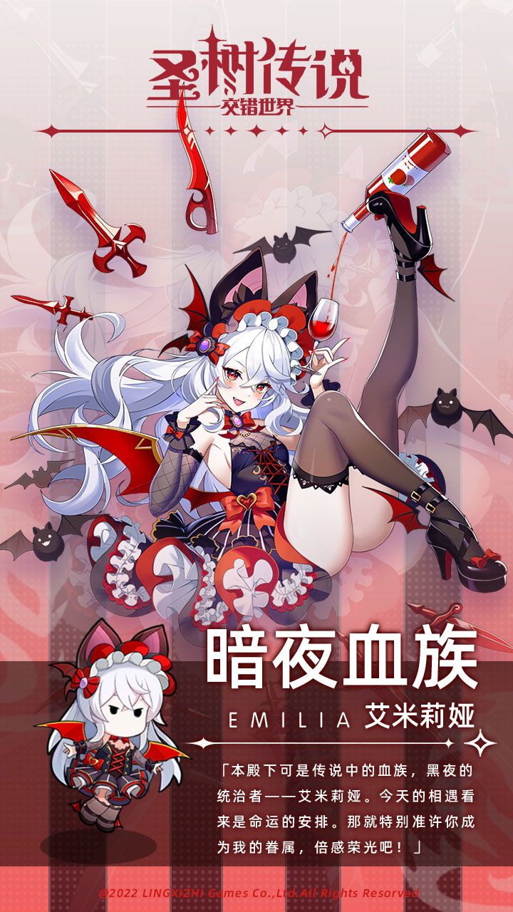 性格:声名狼藉的组织“夜血兄弟会”的首领,外表看起来个有点妹控的优雅少女,内在也有着杀伐果断的恐怖一面。对邪神使徒充满着仇恨,无法忘记好友的死和邪教徒对自己的迫害,亲眼目睹了好友的死而力量暴走,救下了把自己当成姐姐的塔尼娅。之后,她创立了组织,把猎杀邪神信徒作为自己的首要目标,救出并收留了有和自己一样经历的伙伴们。但是组织雷厉风行、不择手段的作风,经常不由分说就在人群中干掉邪教使徒和夺取邪教的物资的行为,在不知情的人们看来这个组织都是个杀人掠货的邪恶组织。由于力量暴走的后遗症,她需要定期汲取他人的能量才能维持住身体,为了不伤害到伙伴,她一个人悄悄到暮光医院接受芙洛琳的治疗,也是那个怪医为数不多的朋友。