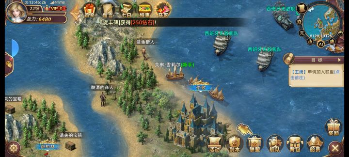 2.5D画面效果,画风看上去很陈旧,有点像页游水准。界面结构简单,UI品质一般。角色造型符合中世纪航海题材定位,哪个国家的人都有,不乏一些历史名人。立绘有动态效果,主线剧情有中文语音,代入感较好。