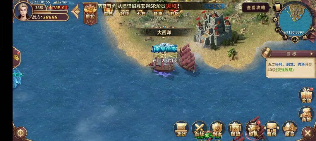 新手教学。做任务,钓鱼。船长优先海盗。现在应该都是40左右级的。努力三黑猪。威尼斯出60就可以跑商用。钻石不要乱用。看活动酌情用。船长装备建议优先武器和戒子。加攻击力。前期装备。2+2+2。或4+2。闪避。暴击都可以。建议闪避。比较好用。每天转转地图。有螃蟹。兔子。蝴蝶。丹顶鹤。海星。贝壳。蝎子。可以换东西。跑商任务-。每个小时的45分钟到整点的15分。比方18;45到19;15分跑喜好。最远距离