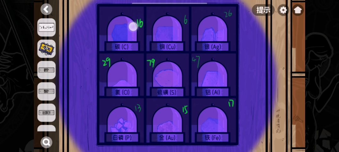 1.柜子中间的谜题和化学元素周期表有关,柜子右下角有字,可以知道打手电,我们再根据每个化学元素的序数可以得到答案 2.每个标牌都对应着图上大脑的一个位置,根据一些提示找到对应的物品就可以了 还有不懂的话,可以在评论区问,看到了就会回(中间有点失误,记错了)#攻略#解谜游戏