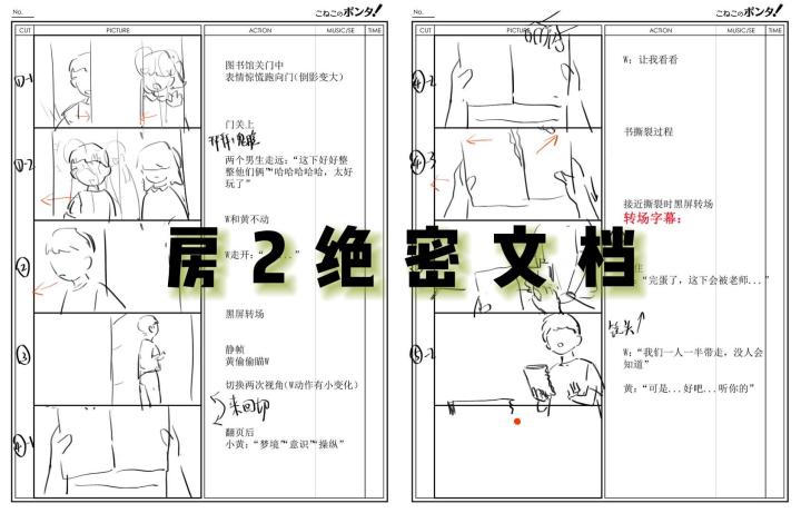 猜猜狗仔花生这次又挖到了什么好东西?它就是———————由剧情策划编写,美术大大绘制而成的绝密的仅内部可看的,《房间的秘密2:起点》剧情视频的分镜手稿!不难看出一条剧情视频的诞生,往往只需要最朴素的分镜描绘。(os:最终大家在游戏里看到的视频都是经过对分镜手稿的修改和优化的,所以不难看出花生狗仔的挖料专业度[自夸.jpg]。