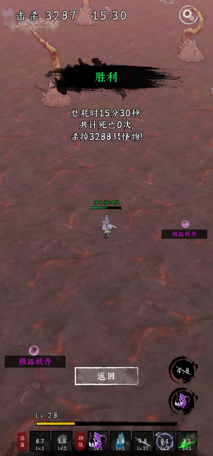 1升级优选 : 雷球,飞剑,陨石升级选项里有显示可进阶,技能到五级可捡宝箱进阶2精英怪(10级左右出的红条小怪)可掉落宝箱四种地图,四个不同精英怪羊 远程丢粪球,近战啃咬(10级左右出第一个)剑修弟子 远程飞剑,近战舞剑(8级左右出)蜘蛛 远程吐毒,无近战(8级左右出)鱼人 无远程,近战挥斧头(10级左右出)3BOSS万兽山 麒麟,普攻扔冰球 技能 冲水柱以及突刺冰棱 注意走