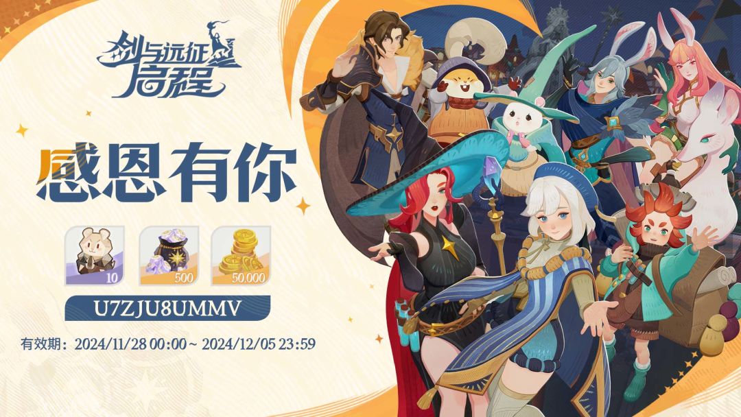 亲爱的大魔法师: 最近我们收到了很多好消息,《剑与远征:启程》荣获了Google Play2024年度最佳游戏后、又获得了2024年年度游戏大奖(TGA)最佳移动游戏提名和App Store Awards 2024 年度最佳游戏提名。 这些喜悦更加提醒了我们,要感恩各位的一路相伴,感谢每一位大魔法师的支持与热爱! 因此,值此之际,我们特别准备了一份小小的心意,为大家送上专属礼包码! 希望你们能够继